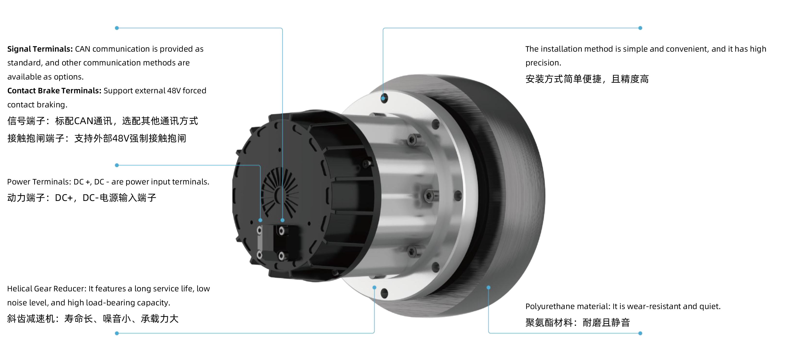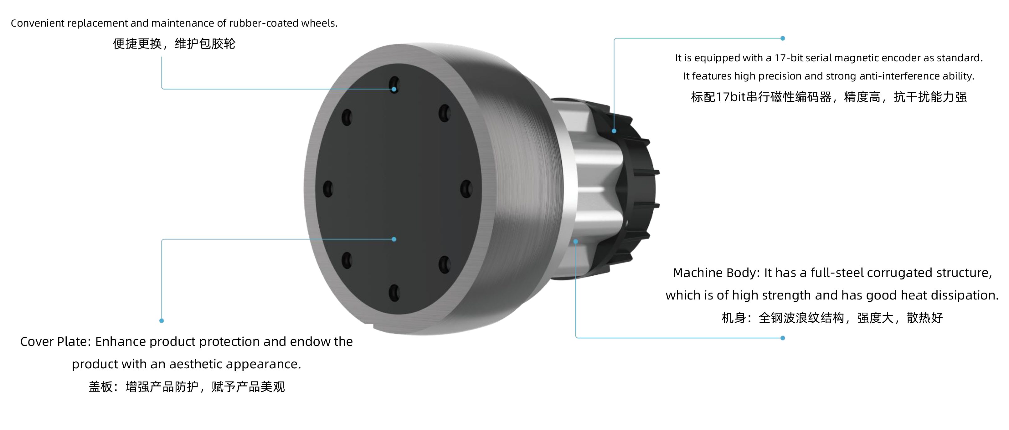 伺服一体轮是将驱动器、编码器、无框电机、减速机、包胶轮等技术高度集成的创新产品,其核心技术自主研发,整套系统性能与可靠性处于国际领先水平。
